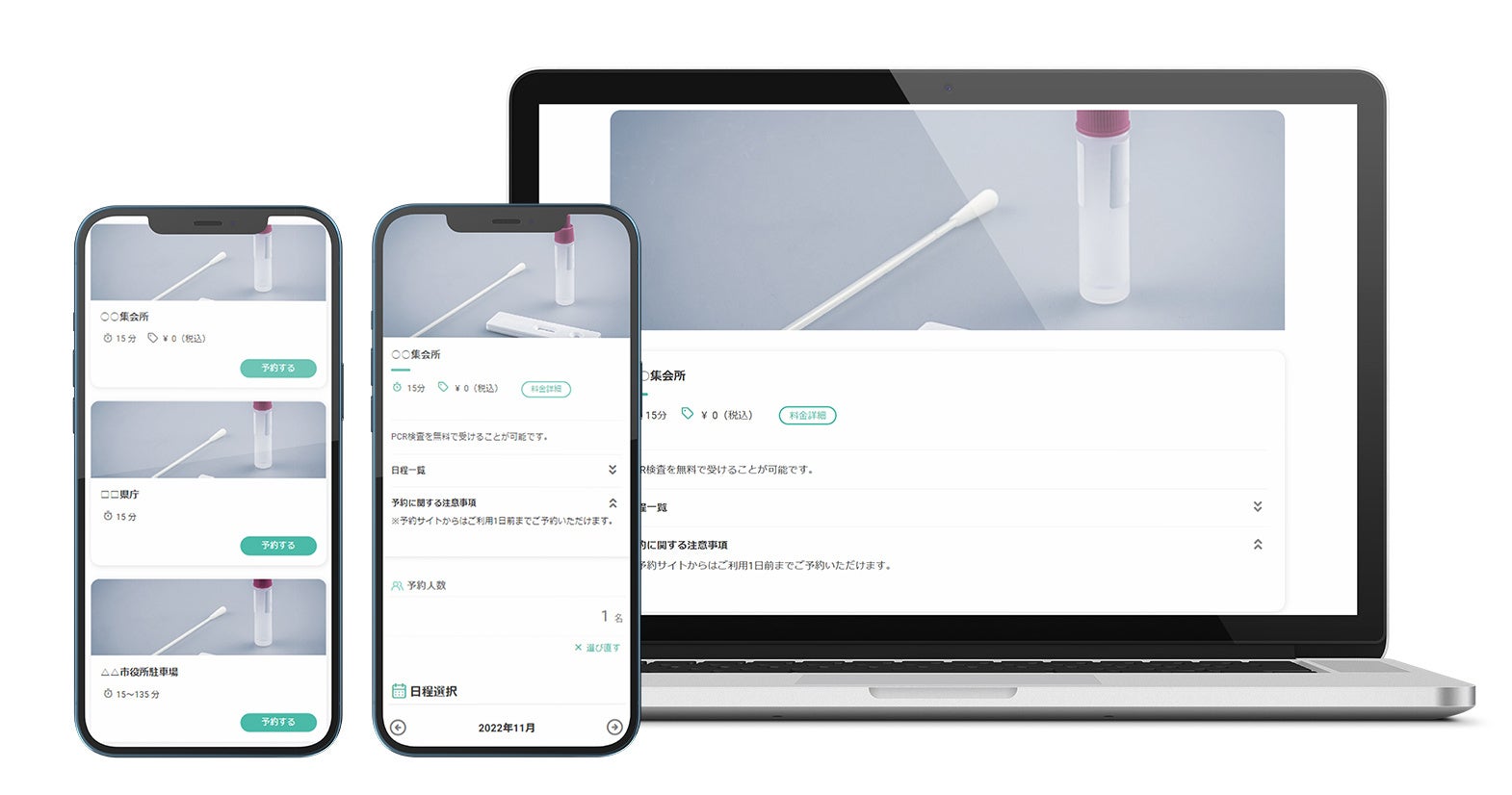 ■PCR等無料検査に対応した予約システム「RESERVA」のサンプル画面