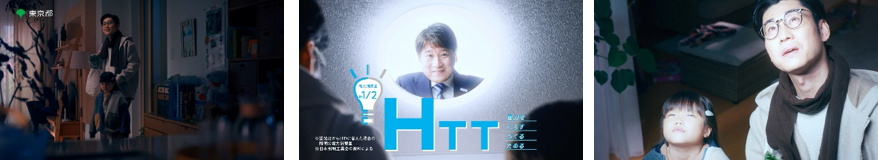 東京都では、気候危機への対応だけでなく、中長期的なエネルギーの安定確保につなげる観点から、電力を「Ⓗ減らす・Ⓣ創る・Ⓣ蓄める」=「HTT」をキーワードに、節電に加えて、太陽光パネルや蓄電池を活用した電力確保の取組を進めています。本TV-CMでは、今夏に放映されたTV-CM第一弾に引き続き、林修さんが「HTT」の重要性を発信します。