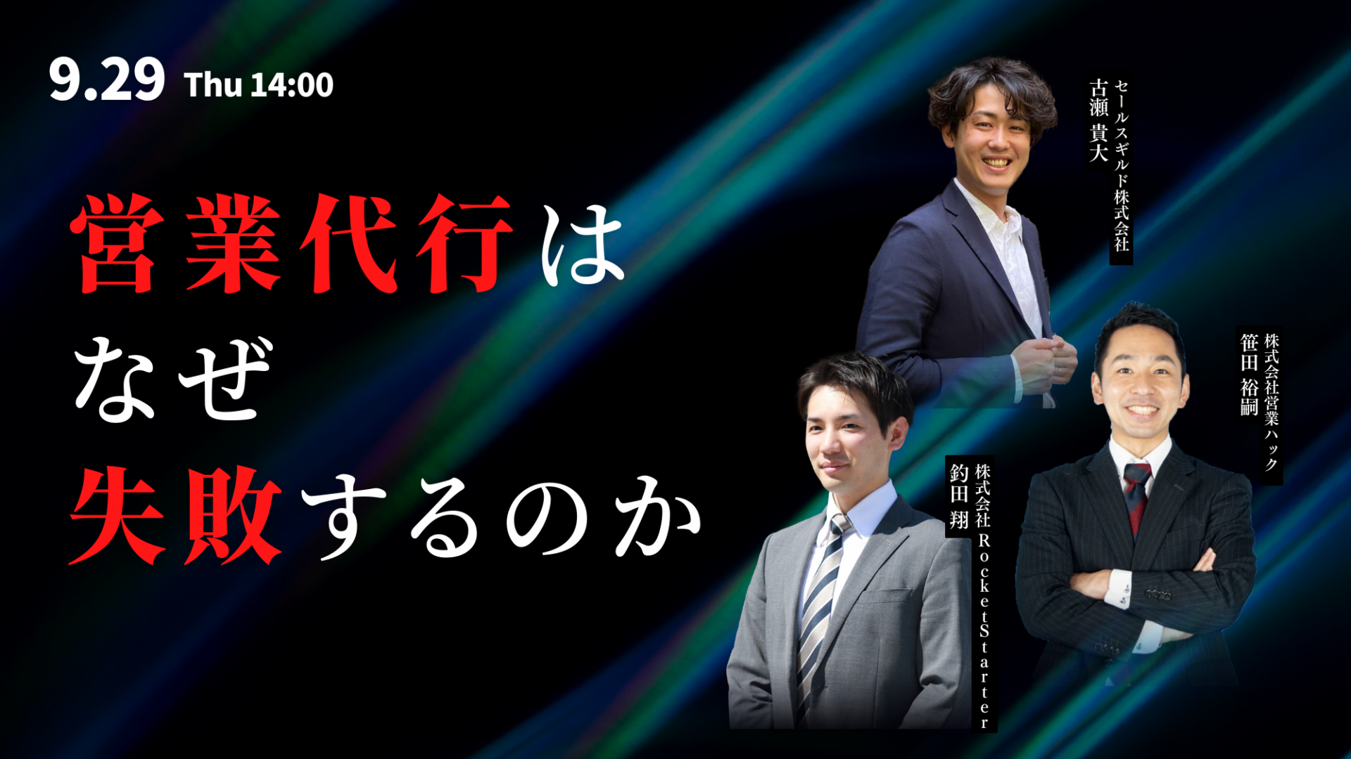 『【営業代行会社の社長3名が語る】営業代行はなぜ失敗するのか|9/29(木)14:00~無料オンラインセミナー開催』