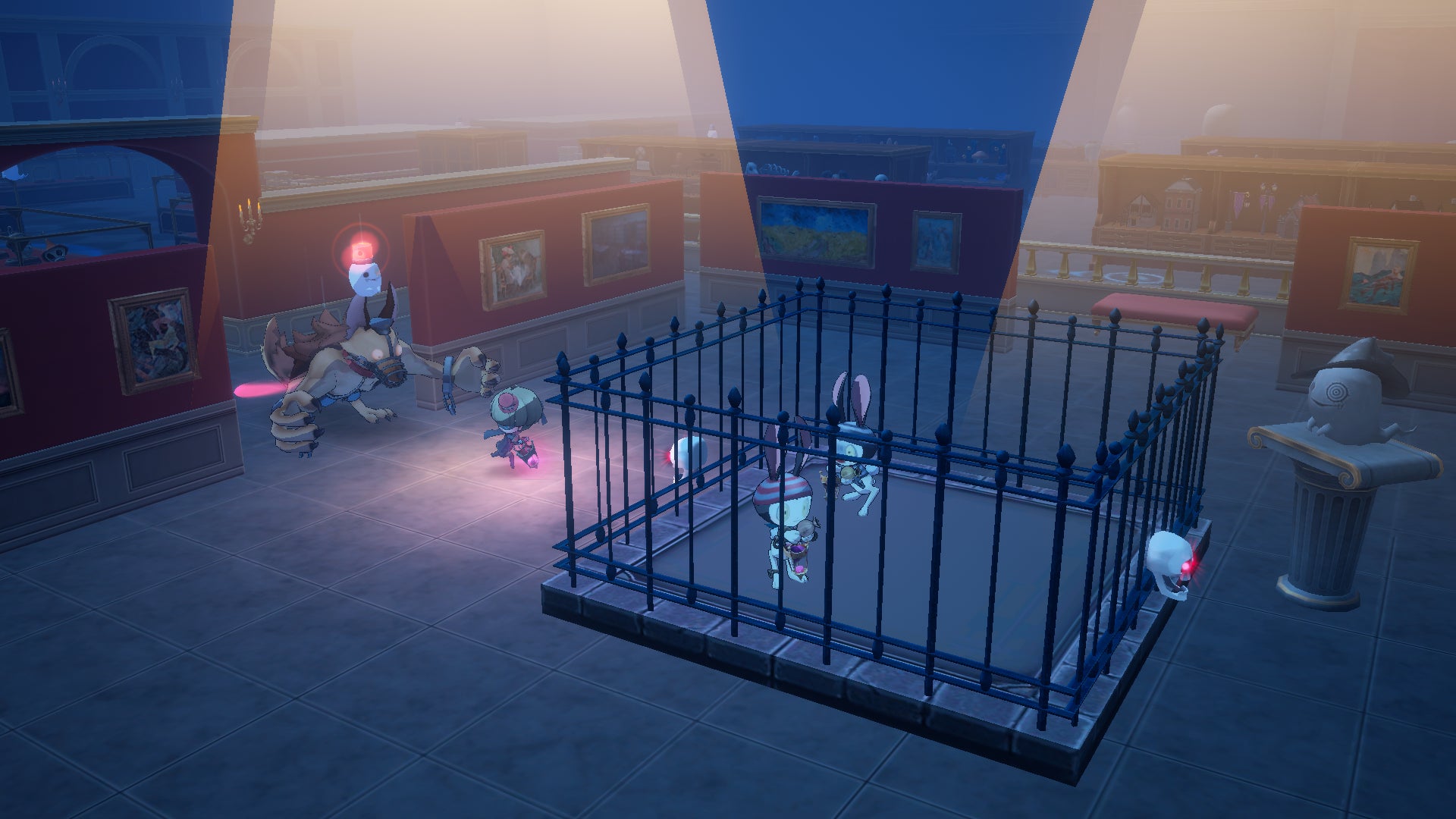 『オバケイドロ!』はシンプル操作と馴染みのあるケイドロを基にした対戦型アクションゲームです。 ゲームのルールとしては、まずオバケ側(1人)とニンゲン側(3人)のどちらの役になるか選択します。オバケ側は3分以内に全員を捕まえて牢屋の中に入れれば勝ちとなり、ニンゲン側は3分間ひとりでも逃げ切れば勝ちとなります。