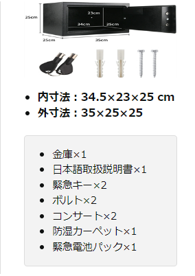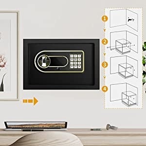 ドリルで壁に穴を開け、本体の背面に2つ穴があり、付属した固定用インサートとボルトを使用して、金庫を壁または床に固定することができます、貴重品をしかっり安全に保護します。