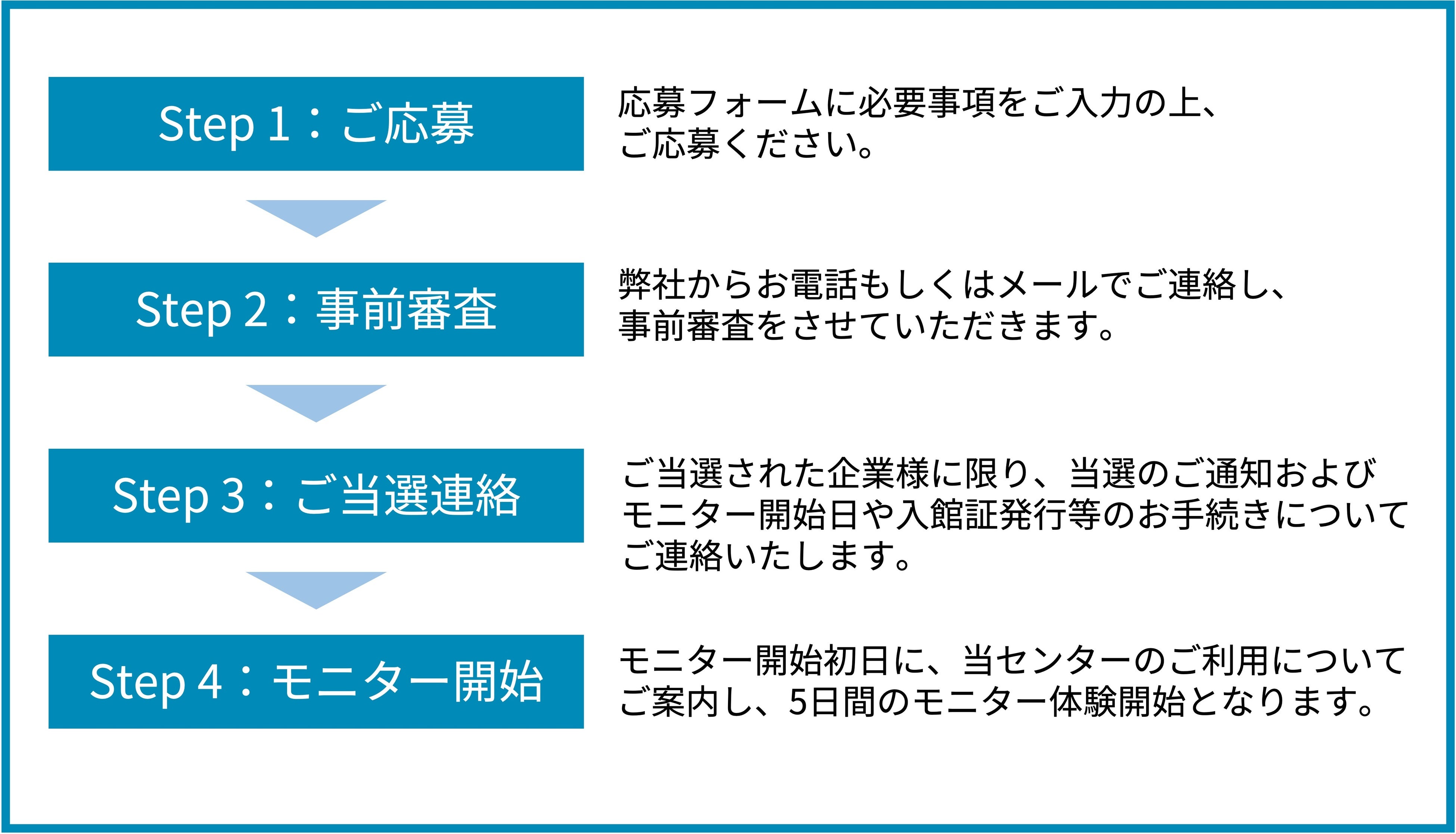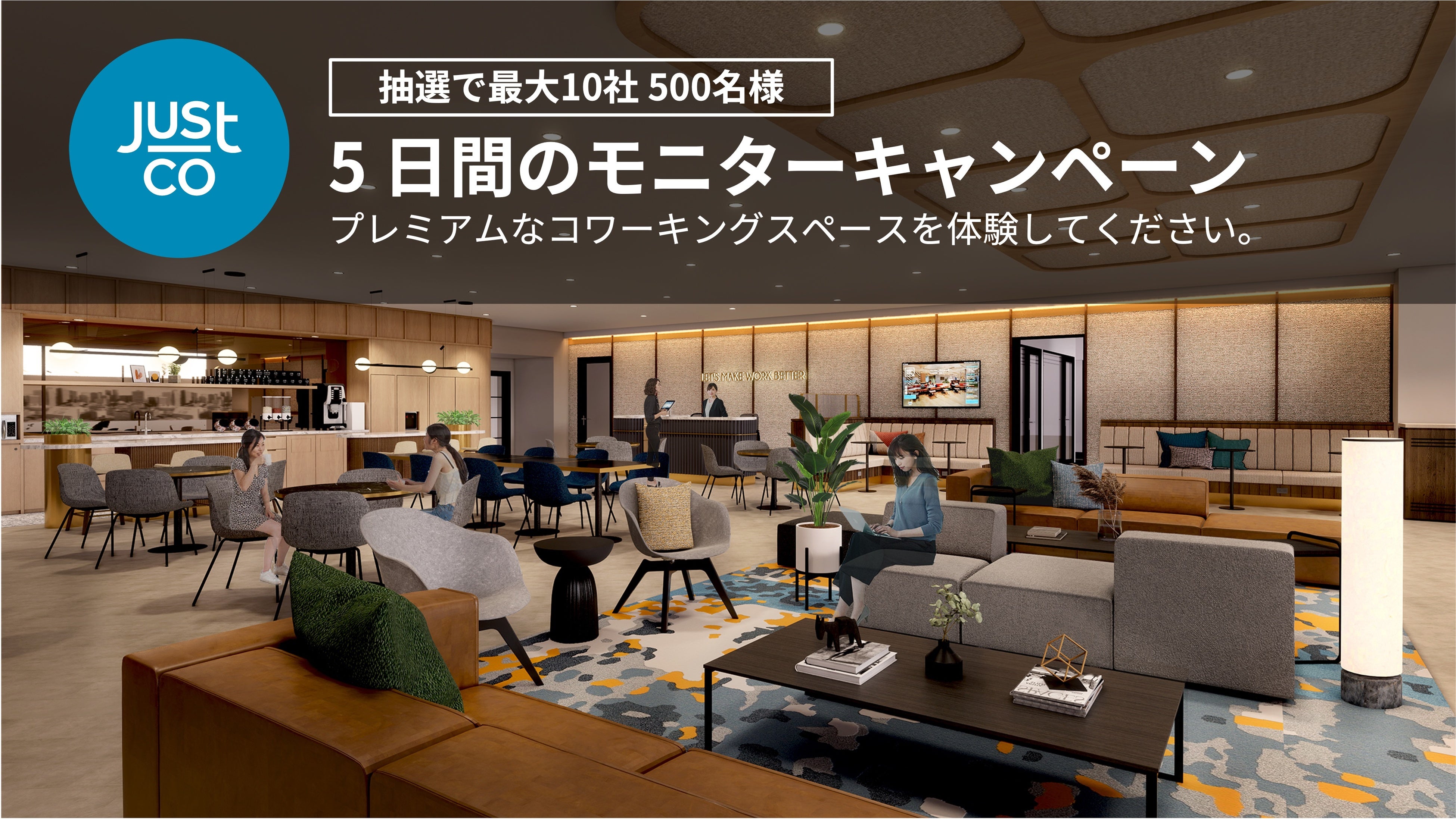 - ご利用施設: JustCo新宿ミライナタワー(18F)またはJustCo渋谷ヒカリエ(33F) *11月15日のJustCo新宿ミライナタワーオープニング以前にモニター利用開始をご希望される場合は、ご利用対象施設はJustCo渋谷ヒカリエ(33F)になります。https://www.justcoglobal.com/jp/locations/tokyo