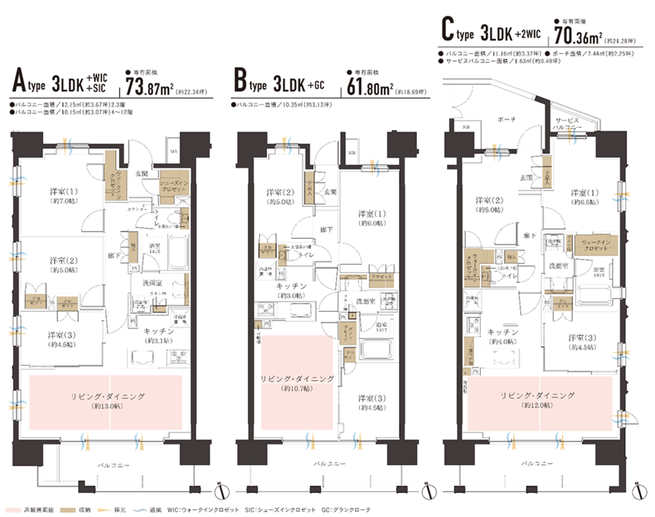 住居専有面積 : 61.80㎡~73.87㎡