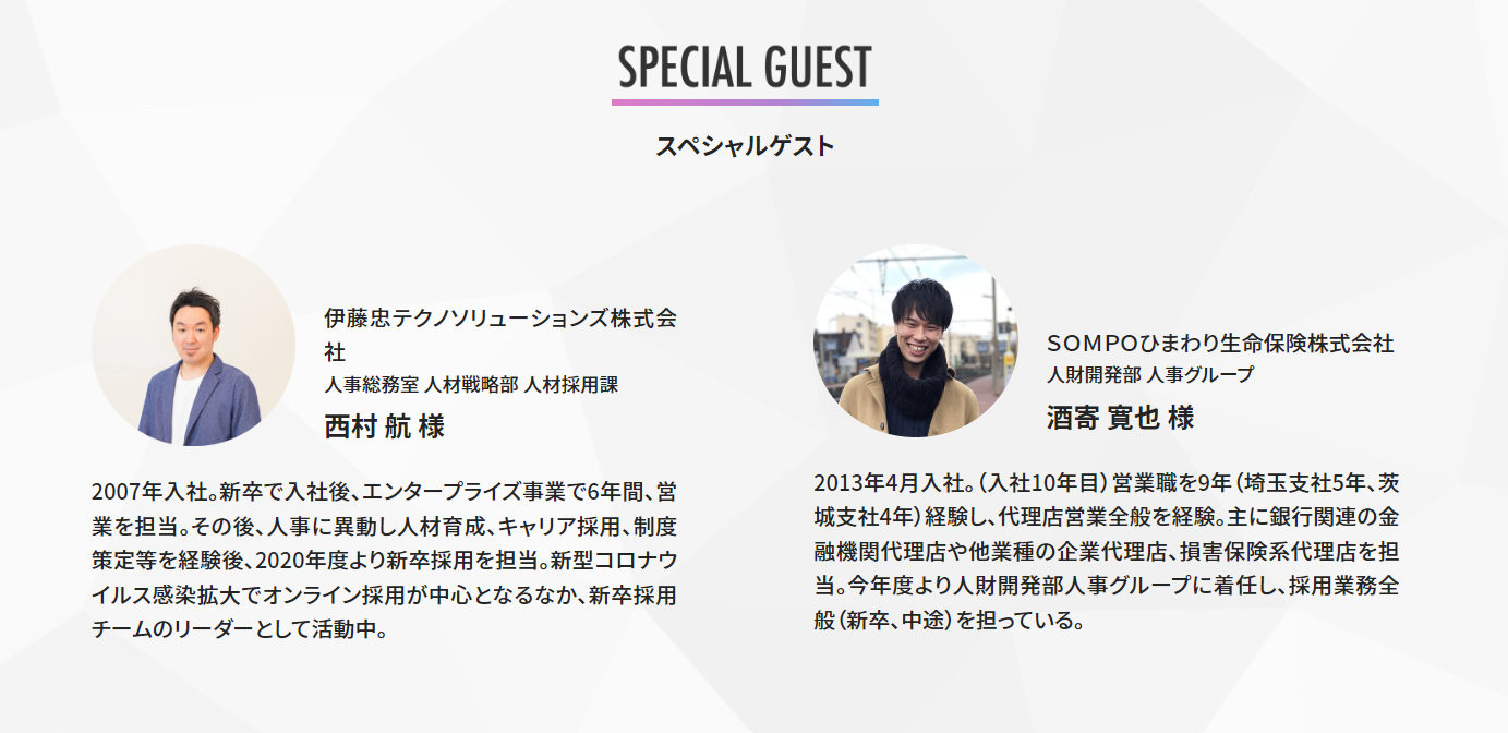 ・伊藤忠テクノソリューションズ株式会社、SOMPOひまわり生命保険株式会社の採用ご担当者様によるプレゼンテーション及びトークセッションです。