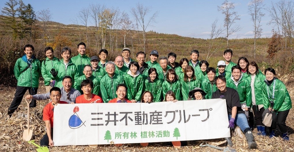 三井不動産グループは、「&」マークに象徴される「共生・共存」「多様な価値観の連繋」「持続可能な社会の実現」の理念のもと、グループビジョンに「&EARTH」を掲げ、社会・経済の発展と地球環境の保全に貢献しています。この保全活動の一環として、北海道に約5,000ha(東京ドーム約1,000個分以上)の森林を保有し、持続可能な“終わらない森”創りに向けて、「植える」「育てる」「使う」のサイクルを回しています。実際にこのサイクルを社員にも体験してもらうために、植林活動を2008年から研修として行っています。