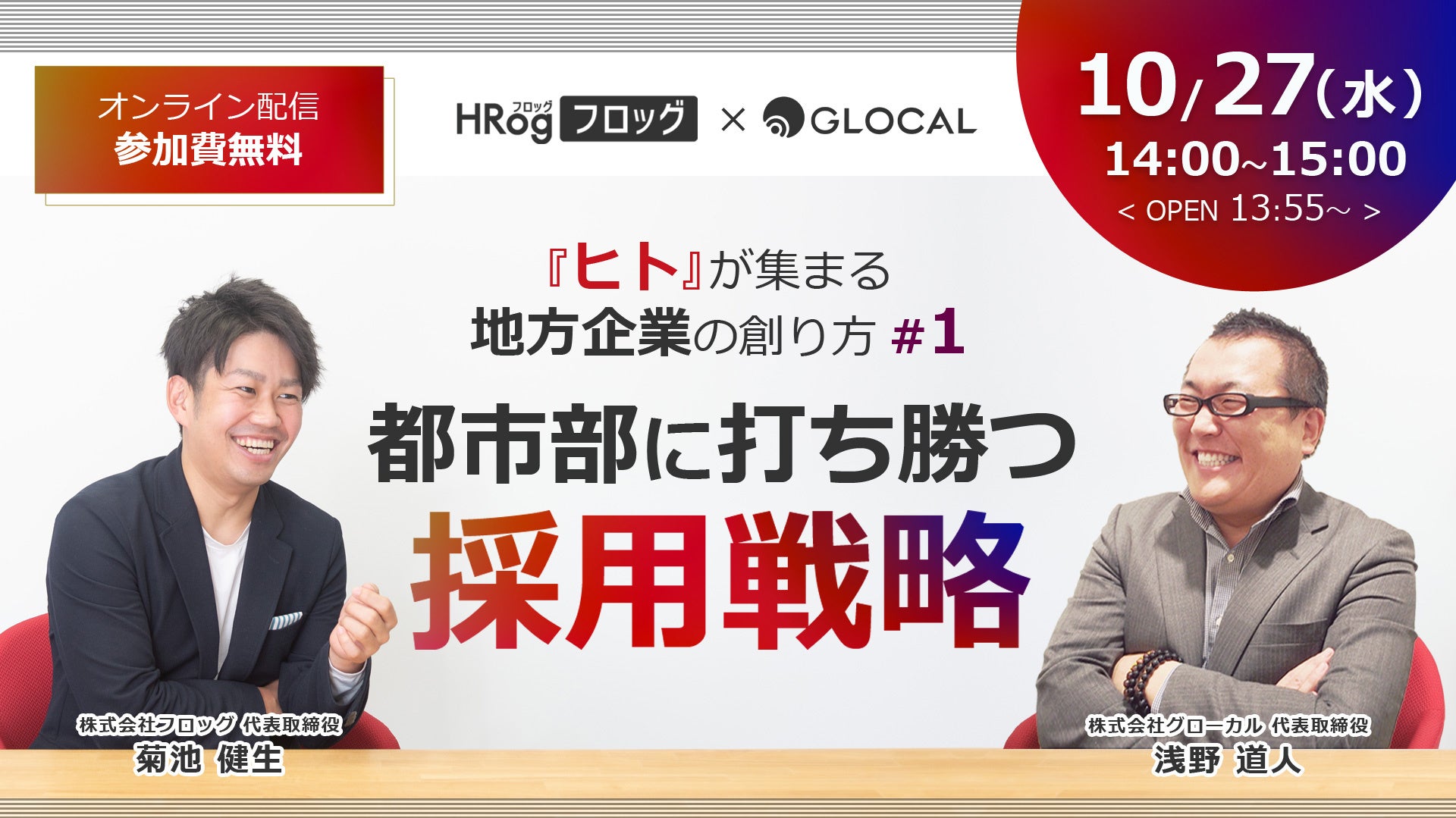 今回は、地方の中小企業の採用戦略支援を行う株式会社グローカルと、人材業界の一歩先を照らすメディア「HRog」の運営をはじめ、求人ビッグデータを活用した様々なサービスを展開する株式会社フロッグの共催で、地方企業の採用の現状と課題、検討すべきポイントについてお伝えいたします。