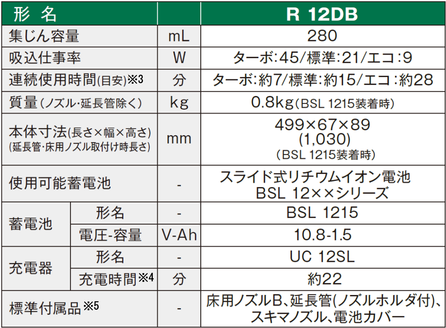 ※3 連続使用時間は蓄電池の状態などにより変わりますので目安としてください。
