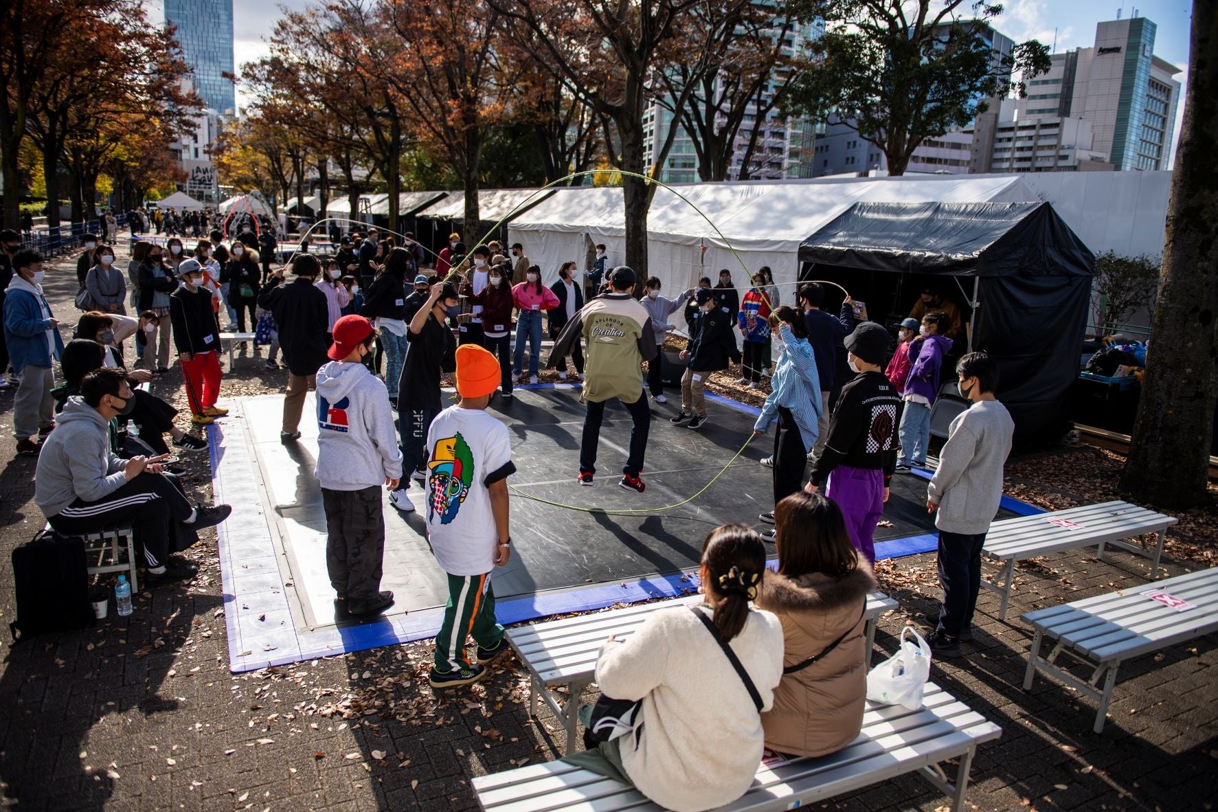 代々木公園 ケヤキ並木の真ん中に特設されたイベントエリアで開催され、新型コロナウイルス感染症感染予防対策が実施される中で、のべ1,000人の来場者と合計20,700人のオンライン視聴者が若き才能のぶつかり合いを応援しました。ブレイキン(Boys)RA1ON、ブレイキン(Girls)YUMETO、ダブルダッチ(Mix)Yu-Yuが各種目で優勝。RA1ONは、2020年度に続き2連覇となる圧巻のパフォーマンスを披露。YUMETOは2020年度の準優勝の結果をバネに、見事優勝を勝ち取りました。Yu-Yuは2021年度、全日本大会であるダブルダッチデライト アドバンスド部門をチームでも優勝し、個人でも優勝を飾る結果となりました。