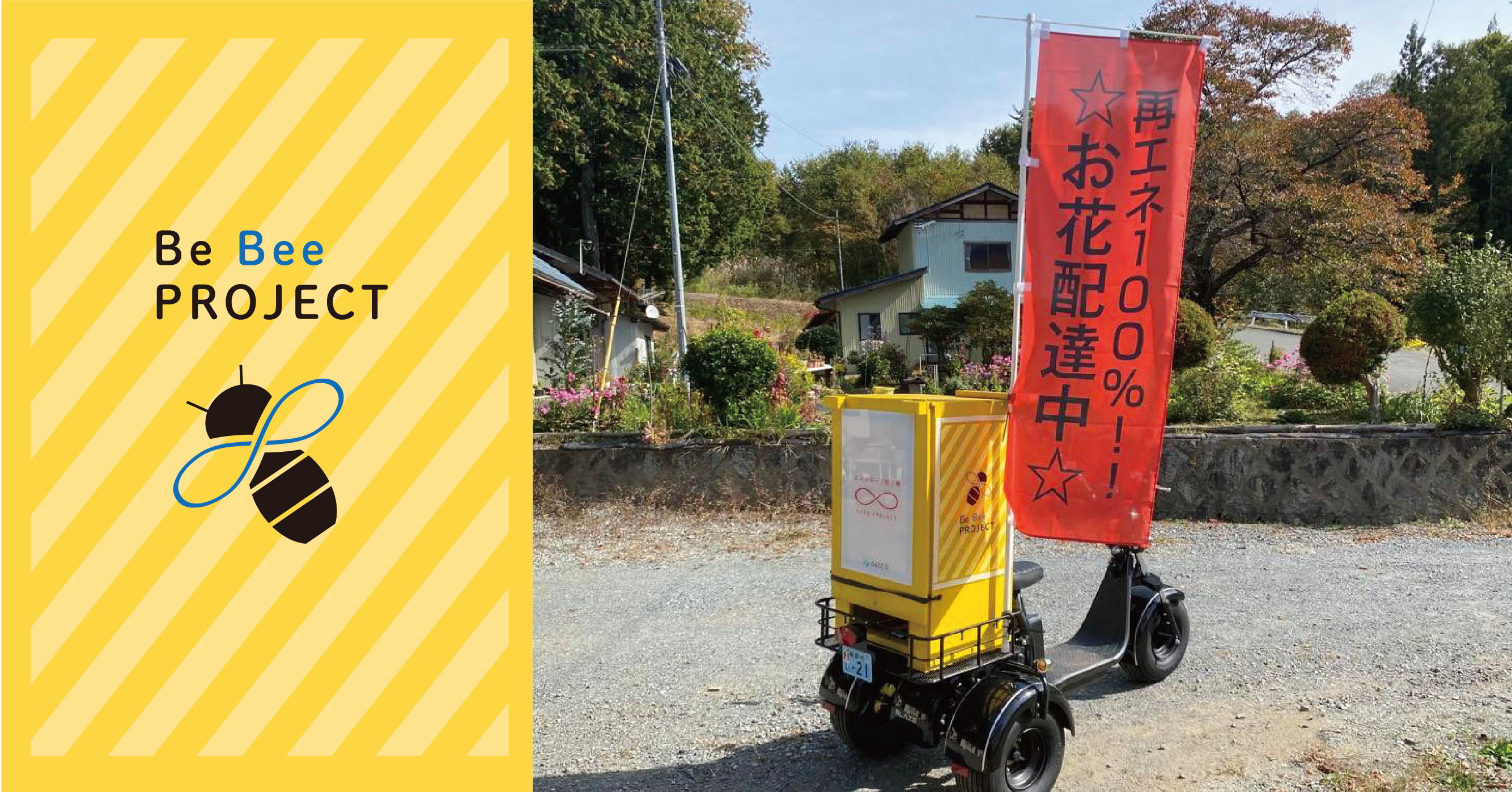 そこで、大きなメガソーラー発電所からの発電ではなくても、まずは家庭菜園で野菜をつくるように、ソーラーパネル1枚から電気をつくることができる「自産自消」を取り入れてみる。太陽の恵みを受けてお花をつくっている畑の側で、同じくソーラーパネルから電気をつくり、エコバイクを使ってお花を出荷する。そんなゼロカーボンの流れをつくっていく取り組みが、この『BeBeePROJECT』です。