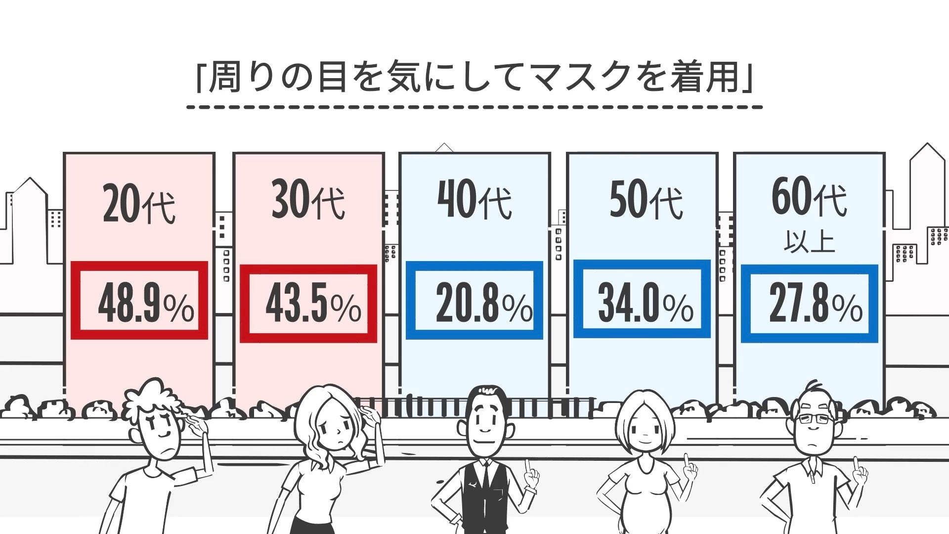 「マスクを着用する」という同じ行為をしていても、年代によって意識には差があるのかもしれません。