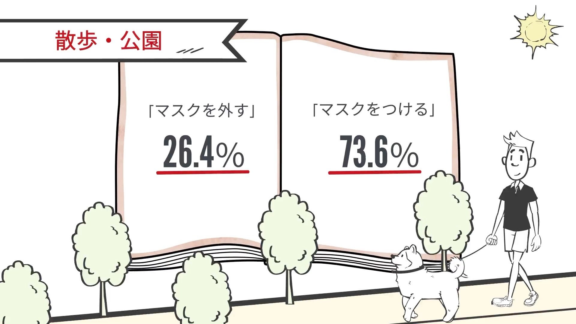 まず、散歩や公園など、屋外で人との距離が2メートル以上離れているところでは、「マスクを外す」と回答した人が26.4%・「マスクをつける」と回答した人が73.6%でした。