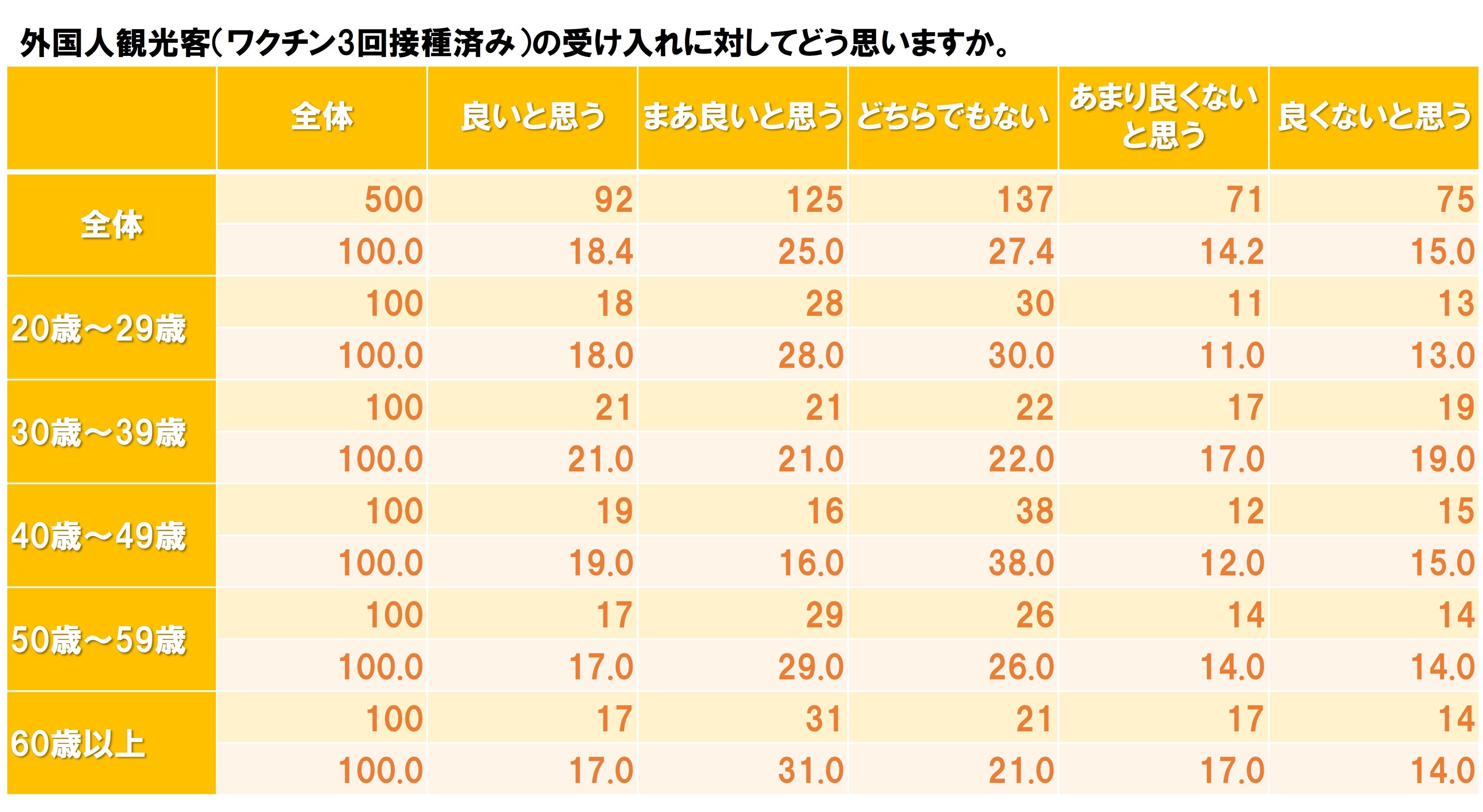 外国人観光客(ワクチン3回接種済み)の受け入れに対してどう思いますか。:あまり良くないと思う・良くないと思う
