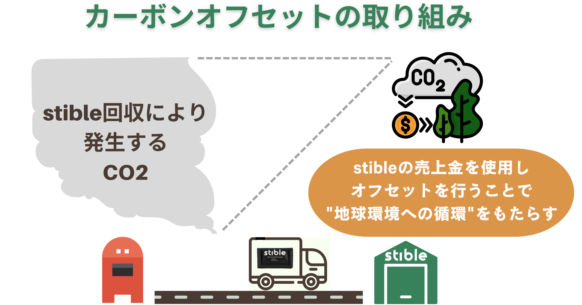 一年に一度、stibleの回収フェーズで排出したCO2の算出を行い、オフセットを実施致します。