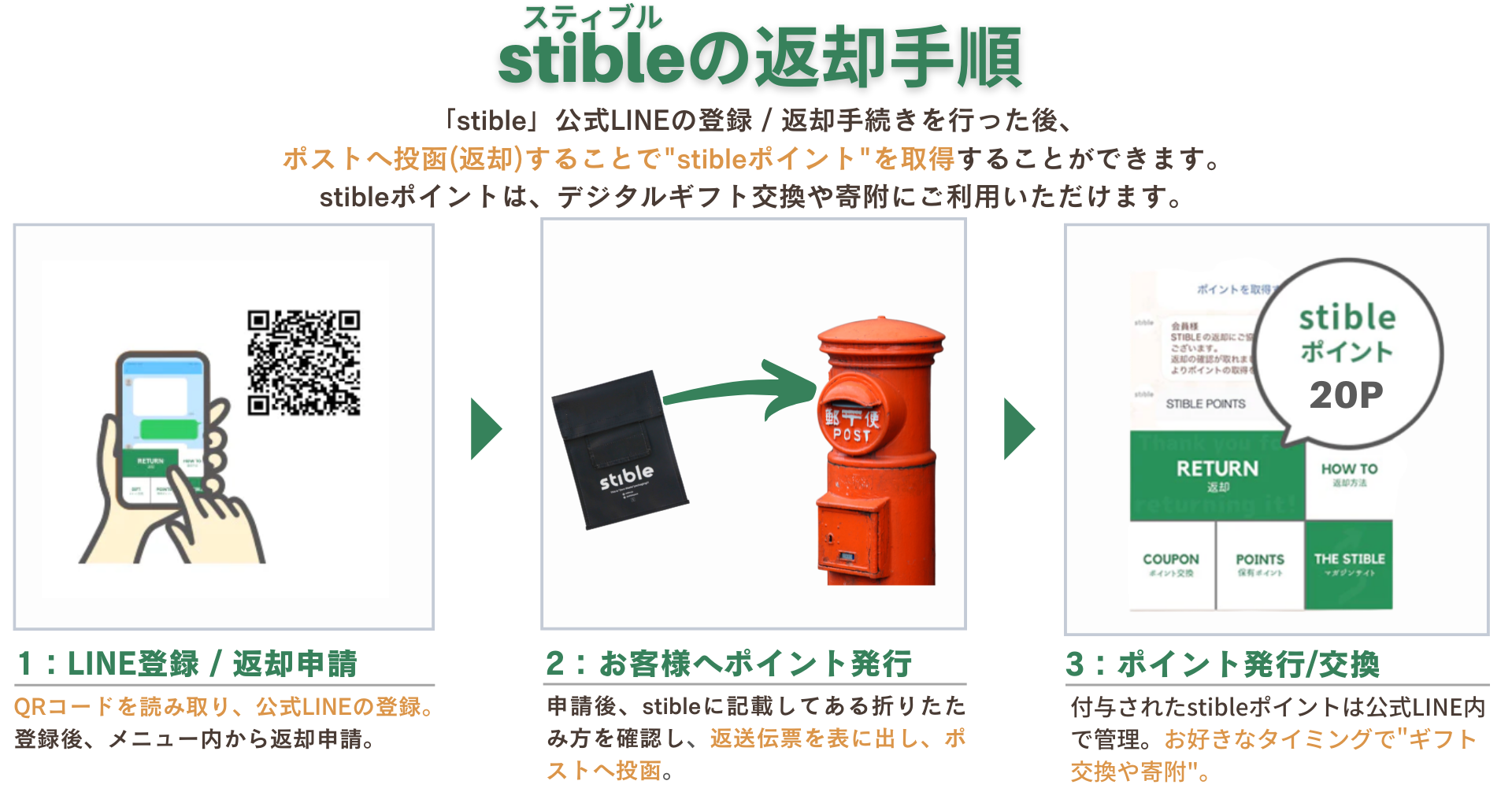 □stibleの返却手順/返却ユーザーへのポイント配布と交換先