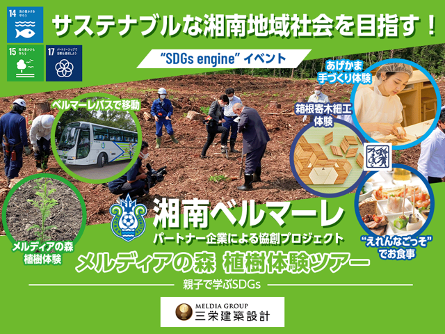 本イベントは当社主催の下、当社がオフィシャルクラブパートナーである湘南ベルマーレを通じ、同じくオフィシャルクラブパートナーである鈴廣かまぼこ様、神田交通様と共にSDGs項目の内、⑭「海の豊かさを守ろう」、⑮「陸の豊かさも守ろう」、⑰「パートナーシップで目標を達成しよう」、これら3つのゴールに各種体験型イベントとしてアプローチすることで、森と海の循環型社会を考えるきっかけとなり、このイベントを通じて、脱炭素社会の促進に繋がればと考えております。