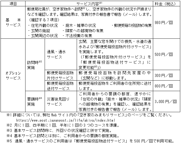日本郵便株式会社(東京都千代田区、代表取締役社長 衣川 和秀/以下「日本郵便」)は、郵便局ネットワークを活用した取り組みとして、「空き家のみまもりサービス」を試行します。これに伴い、本試行にご協力いただける方を弊社Webサイトで募集します。