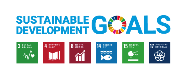 ※ 本リリースの取り組みはSDGsが掲げる17の目標のうち「3・4・8・14・15・17」に貢献しています。