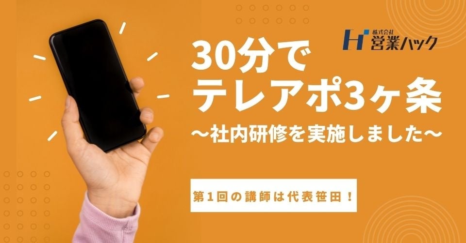 営業ハックでは、現在採用活動を強化中です。営業代行事業に携わりテレアポの架電をする新メンバーも増えてきたことから、まずは全員がテレアポの基礎基本をマスターすることを目的に今回の社内研修を実施しました。初回である今回は代表の笹田が講師を担当し、「出会えて良かった」「話して良かった」を提供できるテレアポにするための3ヶ条をお話しました。