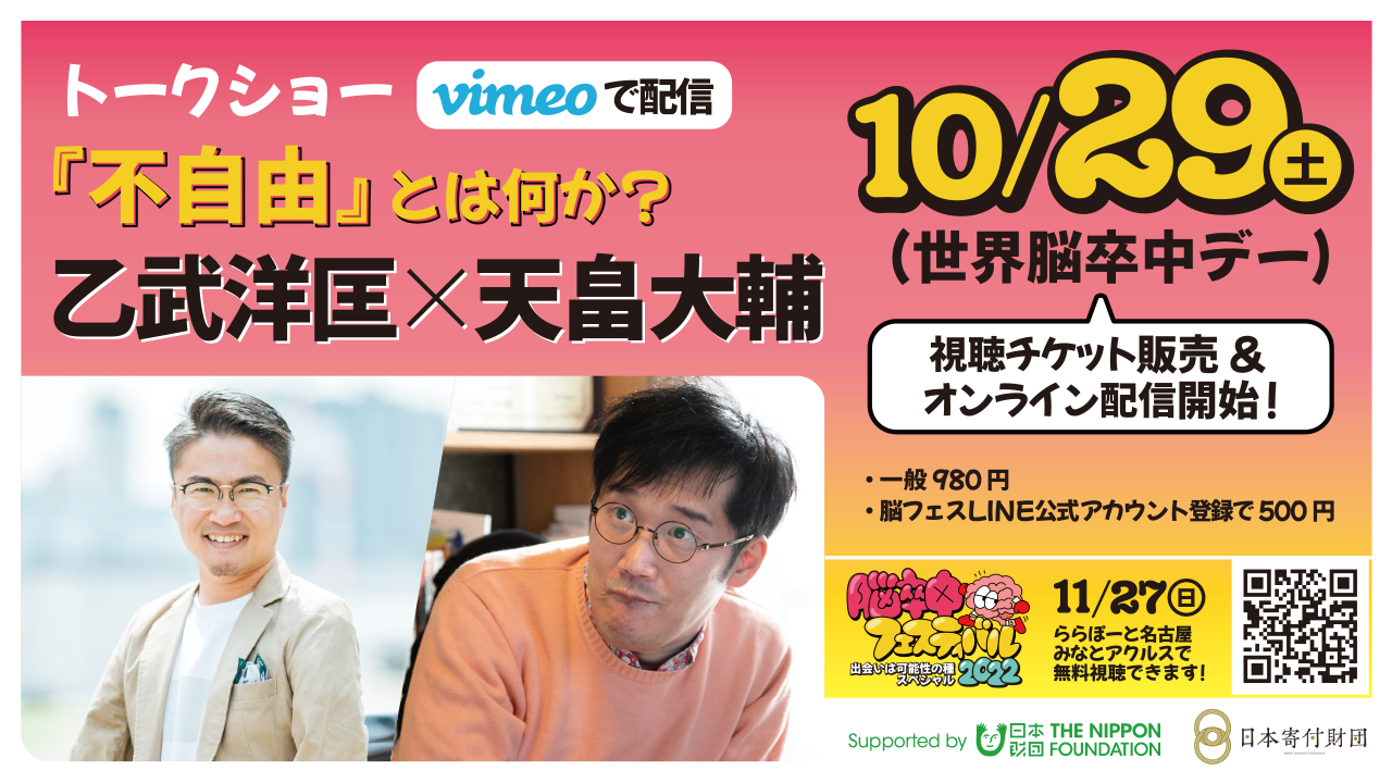 生きづらさの定義は様々ですが、生まれつき、もしくは先天的に重篤な障がいを負いつつも、一見すると限りなく自由に生きているように見えるお二人に話を伺うことで、生きづらい現代社会を生き抜くヒントが見えるのではないでしょうか。