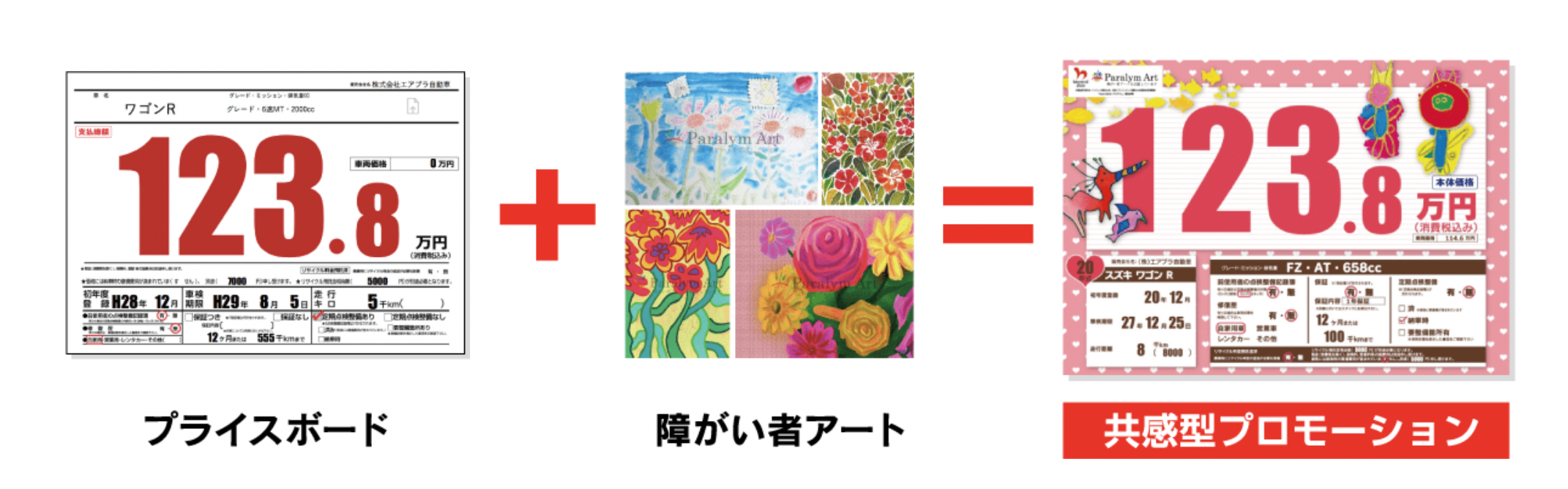 株式会社イプラは自動車展示場の環境改善を通じてクライアントのブランド価値の最大化と集客導線を高めることをミッションとするクラウドサービス【エアプラ】を運営しています。エアプラはパソコンから入力するだけで簡単にプライスボードが作成できるサービスです。今回、障がい者の自立推進を行う“パラリンアート”との連携でPR効果の高い社会貢献型事業(ソーシャルビジネス)を提供します。