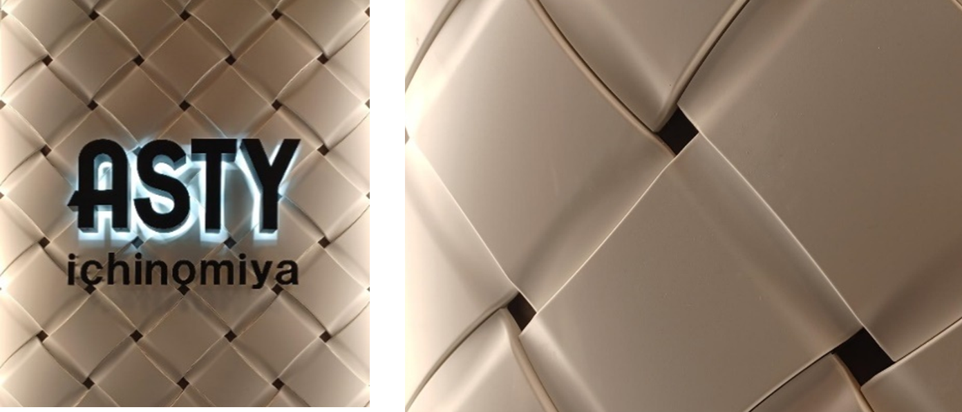 今回の「網代」が採用された背景には、Demoldの実績である「JR熊本駅」のなまこ壁をご覧になった、名古屋ステーション開発さまからのお声がけがあります。布の縦糸と横糸を表現する「網代」は、歴史ある繊維の街として有名な一宮市の玄関口である尾張一宮駅の重要なモチーフになると、採用に至りました。