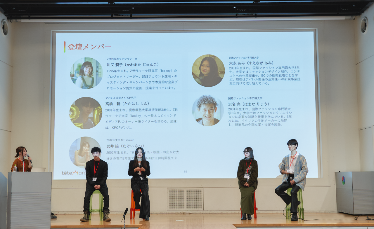 lookeyのインターン生および国際ファッション専門職大学の学生でファッション高関心層であるZ世代の4名が登壇し、それぞれのお気に入りのファッションブランドと【ブランドとの出会い】と【共感したポイント】について発表しました。