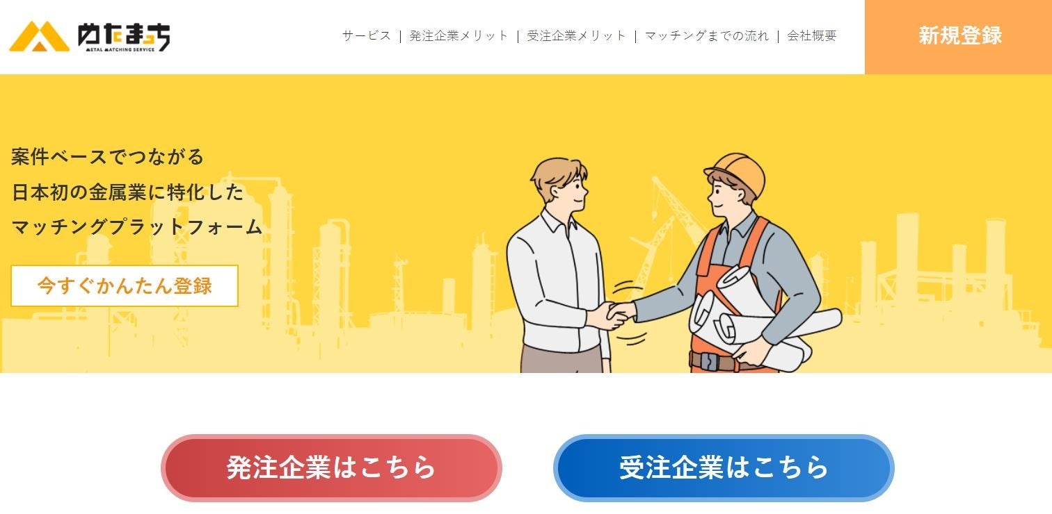 そこで、弊社ではそういった課題解決に加えて、効率的に新規取引先開拓をする際の金属業界特化型プラットフォームである「めたまっち」というサービスをリリースしております。広報PR+マッチングができるWEBサービスとなっております。 実は、“金属加工業だけに特化”したPRサイトやマッチングアプリケーションは、今までありませんでした。本サービスを活用される際のメリットとして、