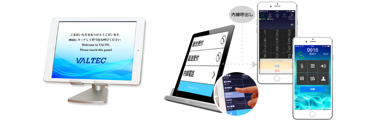 特長① 受付から内線で直接担当者を呼出し、総務の業務負担を軽減
