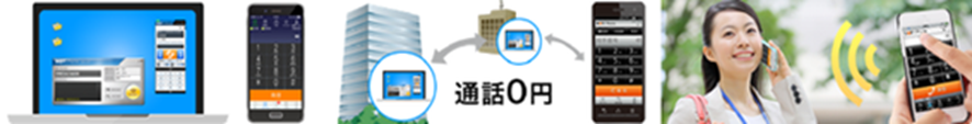 社員間・拠点間の通話も0円。通信コストを削減しながら、場所を問わないコミュニケーションが可能になるサービスです。