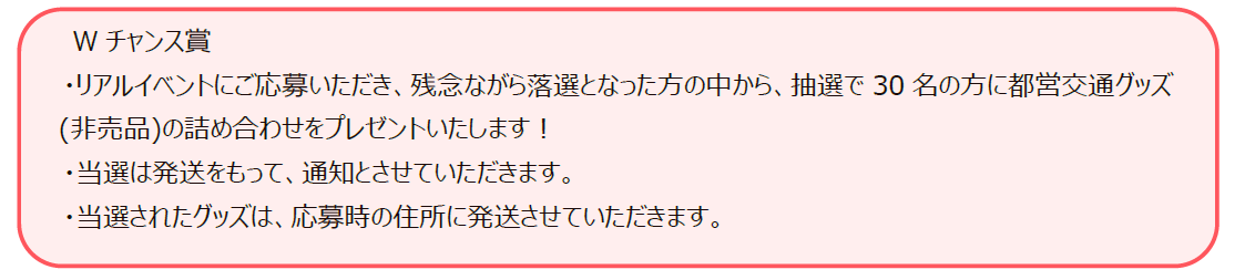 ・地元地域の皆様に、東京都交通局を身近に感じていただくため、10時、10時30分の2回は、大田区にお住まいの方のみのご応募となります。