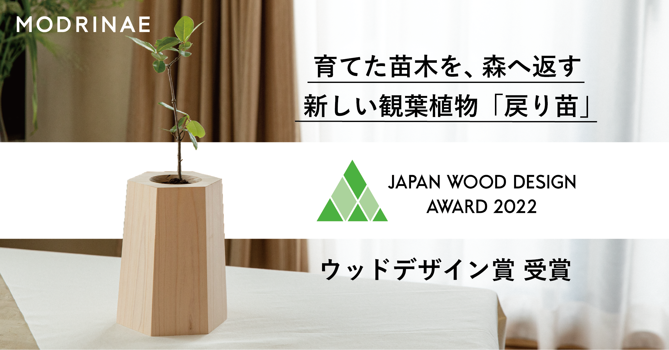 戻り苗は、木を使って森林・林業や地域・社会の持続性を向上させているものが対象のソーシャルデザイン部門にて、「ウッドデザイン賞」を受賞しました。