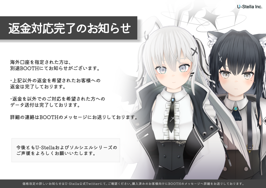 また、詳細に関しましては対象のお客様にBOOTHにてメッセージをお送りしております。