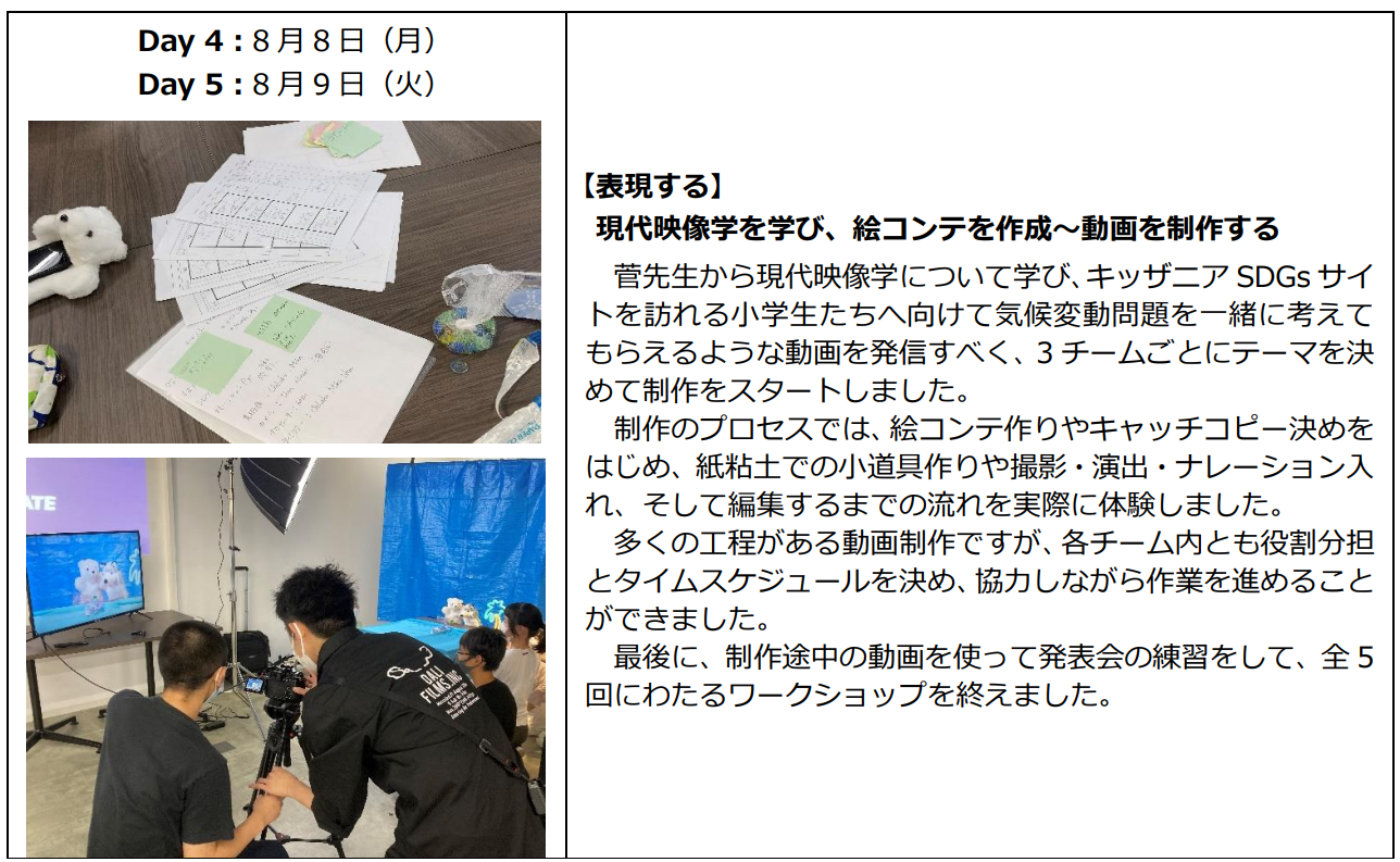 完成した動画を視聴し、皆さんのレベルの高さに驚いたと同時に、気候変動という大きなテーマを各チームが分かりやすく伝えていて感嘆しました。
