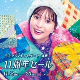 三井アウトレットパーク 倉敷では、2022年11月3日(木・祝)~11月20日(日)の期間、三井アウトレットパーク 倉敷「11周年セール」を開催いたします。期間中は、11にちなんだおトクな商品、割引など多数ご用意しております。この機会に三井アウトレットパーク 倉敷を心ゆくまでお楽しみください。