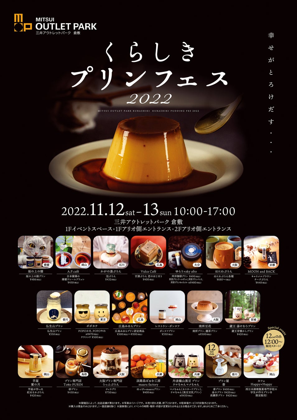 全国から選りすぐりの合計20店舗のプリンが大集合。至福のひとときを三井アウトレットパーク 倉敷でお過ごしください。