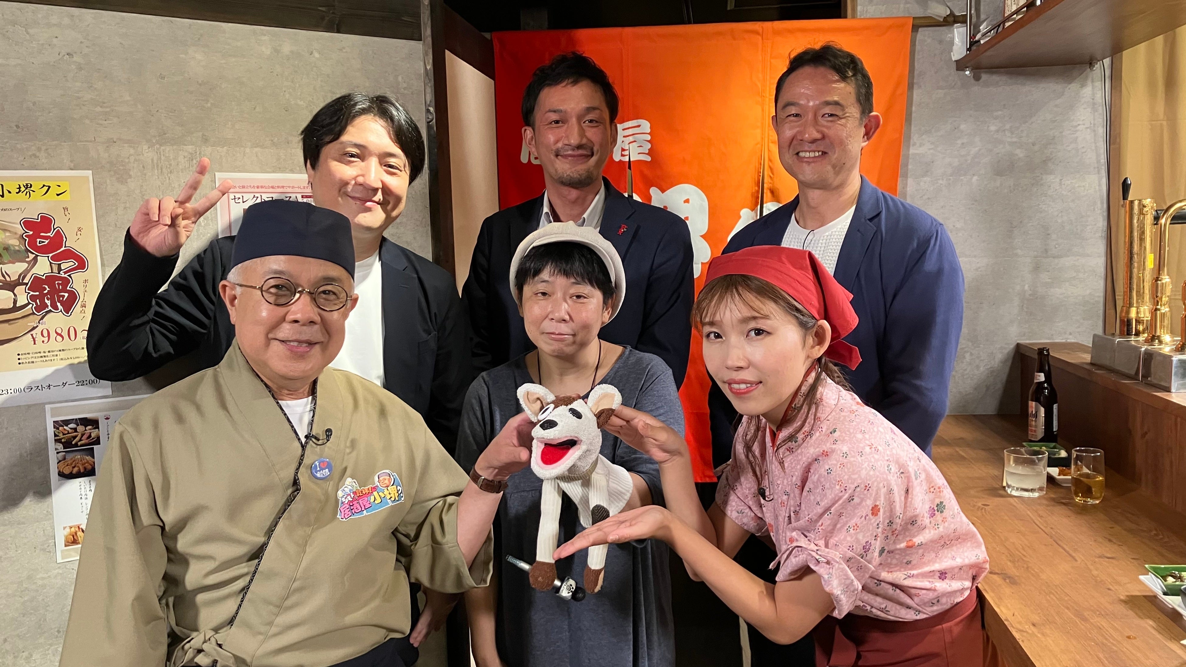 後編では、一般社団法人船橋市観光協会 事務局長の栗田 文彦さん(後中央)と、一般社団法人船橋市観光協会 編集部の伊阿弥さおりさん(前中央)と合流し、さらにトークが展開されます。