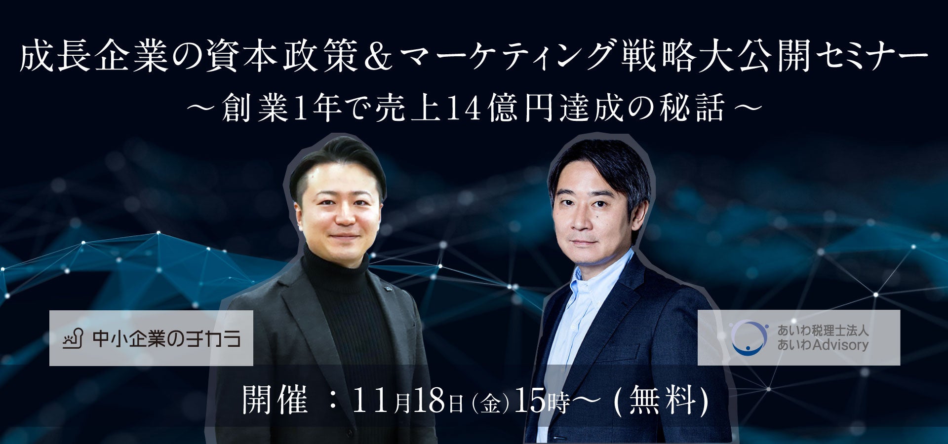 今回は、上場企業300社以上の支援実績を誇る、あいわ税理士法人 代表税理士の杉山 康弘氏と共に、成長企業に欠かせない、資本政策とマーケティング戦略についてお話しさせていただきます。上場を目指す経営者必見のセミナーです。