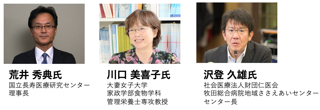 フレイルを予防・改善するために重要な「栄養」「運動」「社会参加」の3つの柱。 これらの専門分野に特化した方をゲストに招き、「簡単に、日々の生活に取り入れられるフレイル予防」をテーマに パネルディスカッションを行います。