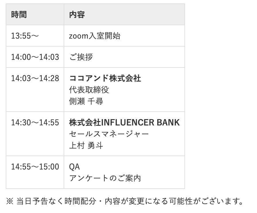 インフルエンサーの個性やスキルを生かしたお仕事を企業とマッチングする「Influencer Works」を運営する株式会社INFLUENCER BANKと、InstagramやTwitterをはじめとした企業のSNSプロデュース&アカウント運用代行サービスを提供するココアンド株式会社がセミナーを合同開催。