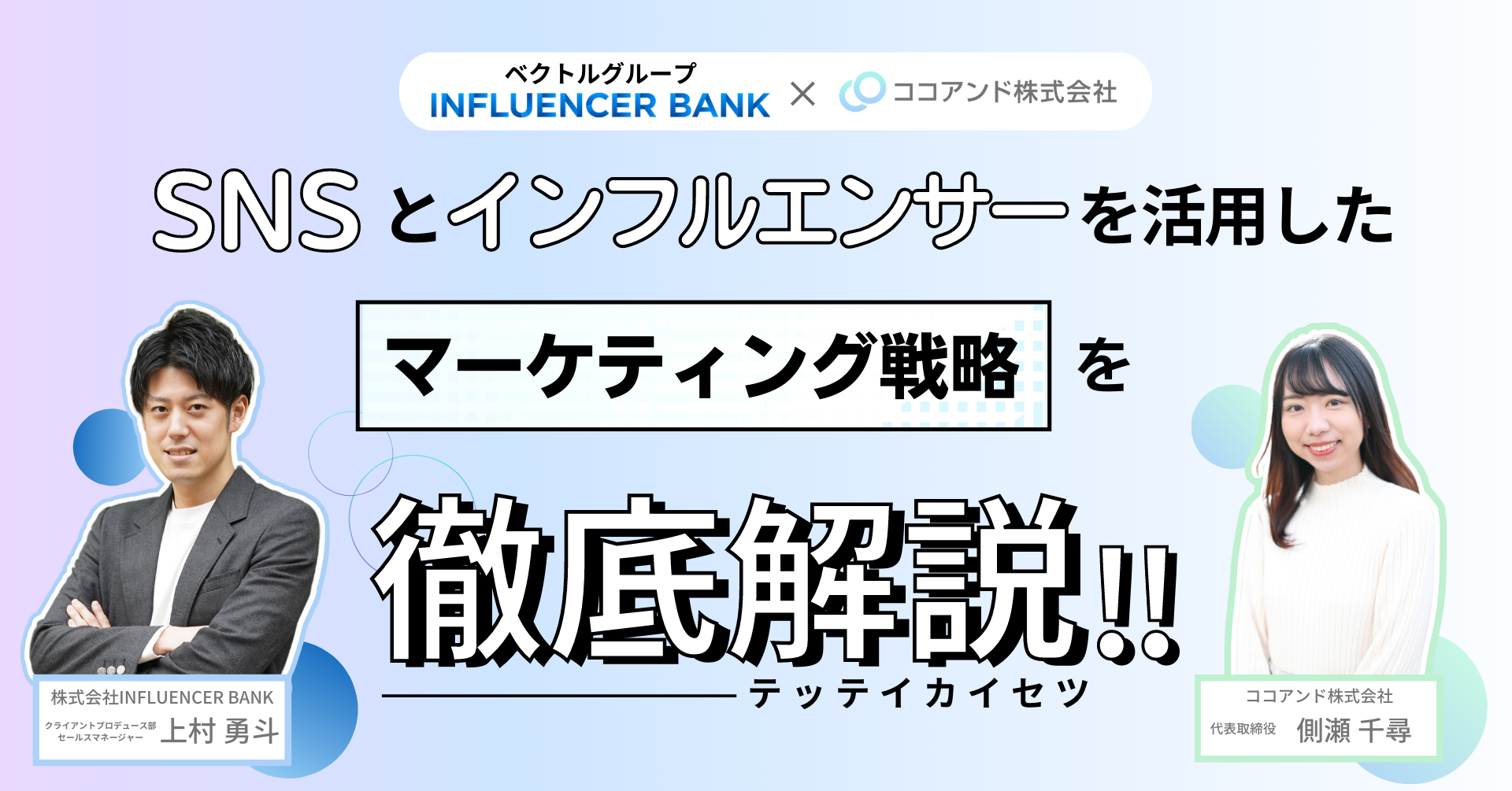 インフルエンサーの個性やスキルを生かしたお仕事を企業とマッチングする「Influencer Works」を運営する株式会社INFLUENCER BANKと、InstagramやTwitterをはじめとした企業のSNSプロデュース&アカウント運用代行サービスを提供するココアンド株式会社がセミナーを合同開催。