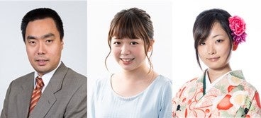 (写真)左から解説/三浦弘行 九段 聞き手/北村桂香 女流初段 読み上げ/野田澤彩乃 女流初段
