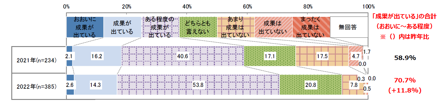 取り組みの成果が出ている企業は7割と昨年に比べ増加
