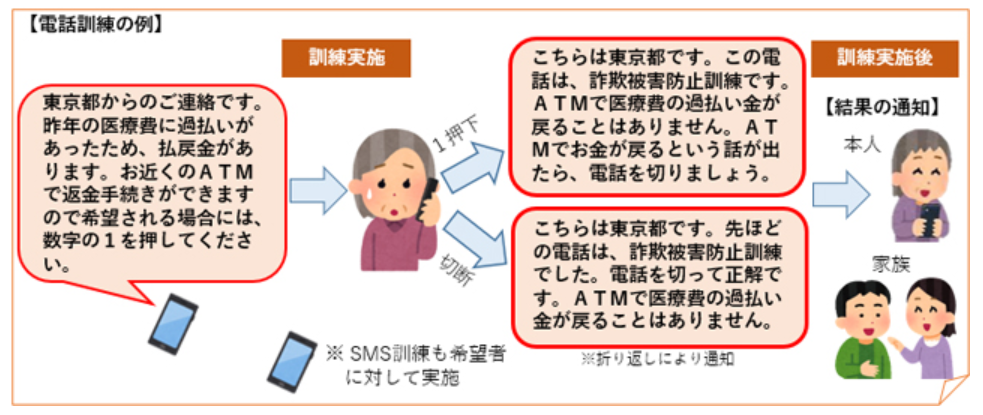 都では、犯行手口を模した電話やSMSによる特殊詐欺被害防止訓練を始めます。