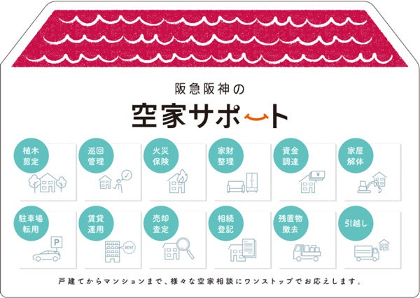 「阪急阪神の空家サポート」(次をご参照)が相談窓口となり、当社のノウハウを活かした豊富なサービスをワンストップで提供することにより、空家所有者(特に、遠隔地にお住まいの方)の負担を軽減することができる。