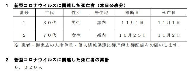 新型コロナウイルスに関連した患者の死亡について business Twitter Facebook はてブ Pocket LINE コピー 2022.11.04 この記事は約1分で読めます。 都内で新型コロナウイルスに感染した方が死亡されましたのでお知らせします。 お亡くなりになった方のご冥福をお祈り申し上げます。