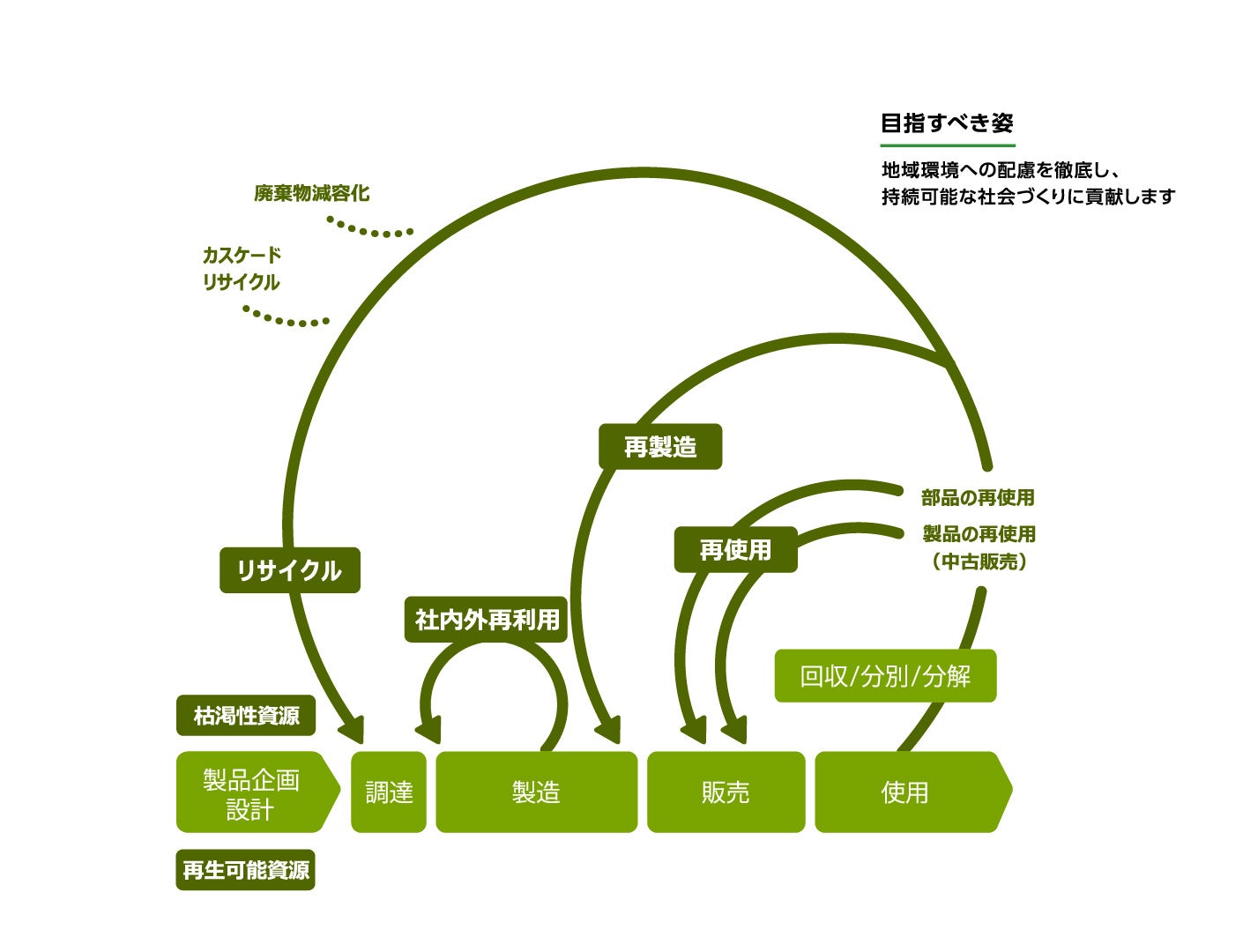 限りある資源をより長く有効に使用し、廃棄物の発生を最小化するものづくりを目指すことで、地球環境への配慮を徹底し、持続可能な社会づくりに貢献します。