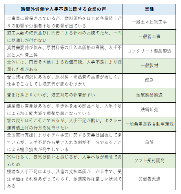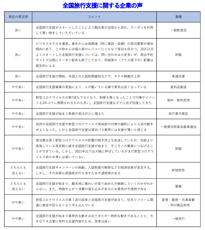 業界別:8業界が改善。全国旅行支援の開始で観光関連が大幅に改善