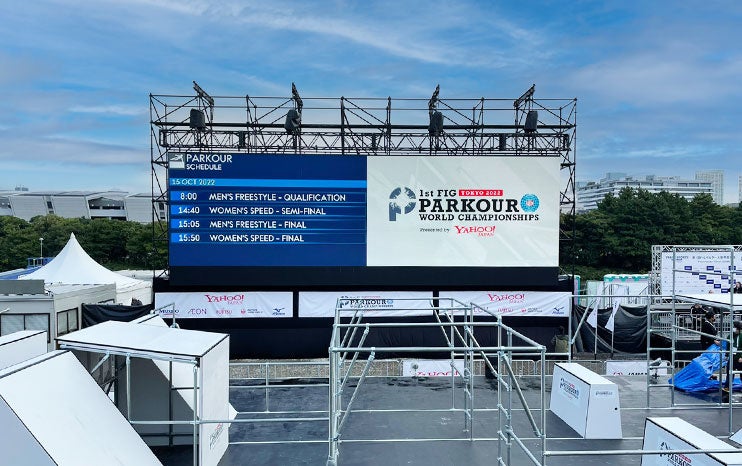 東京で初の国際大会「第1回FIGパルクール世界選手権 Presented by Yahoo! JAPAN」を大型のLEDビジョンで彩りました。