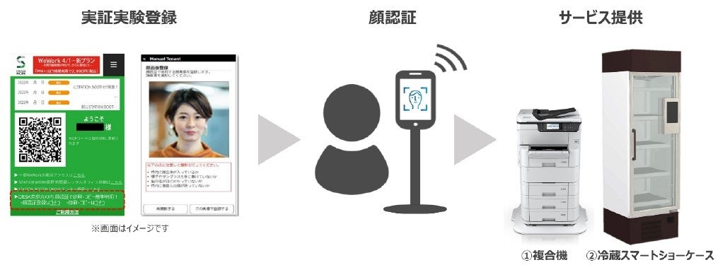 ※7 顔認証のための顔画像および顔特徴量データ(個人識別符号として個人情報に該当)は、パナソニック コネクトが、本実証実験のために定めるプライバシーノーティスに則り、ご利用頂くお客さまの同意を得たうえ、適正に取得・保存します。取得・保存される顔画像および顔特徴量データは、本実証実験の「顔認証 複合機」と「顔認証 冷蔵スマートショーケース」の利用目的のみで利用し、他の目的で利用することはありません。