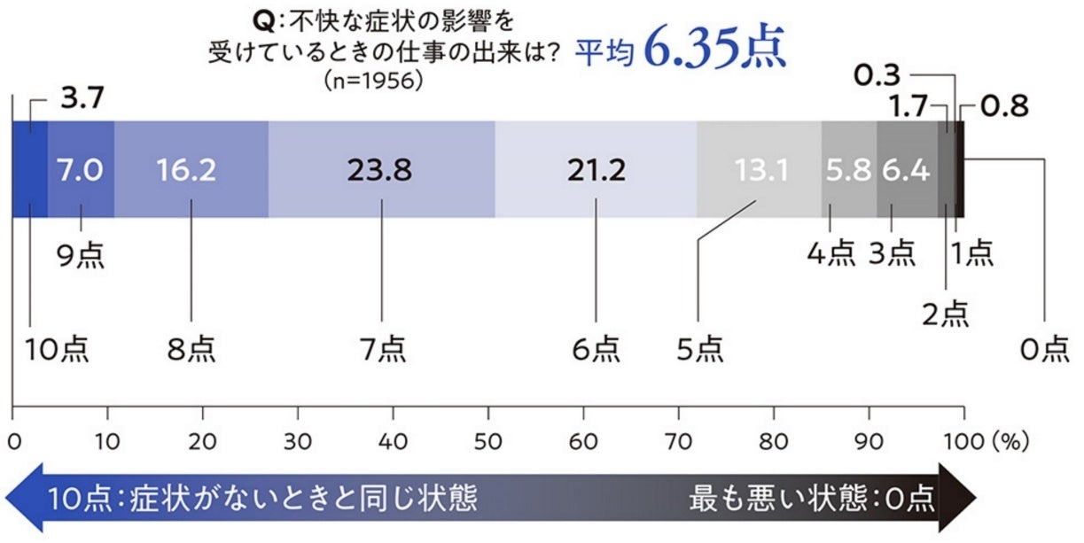 ●生理の不快な症状で4人中3人の女性が仕事の効率低下を感じ、生産性は約6割にダウン
